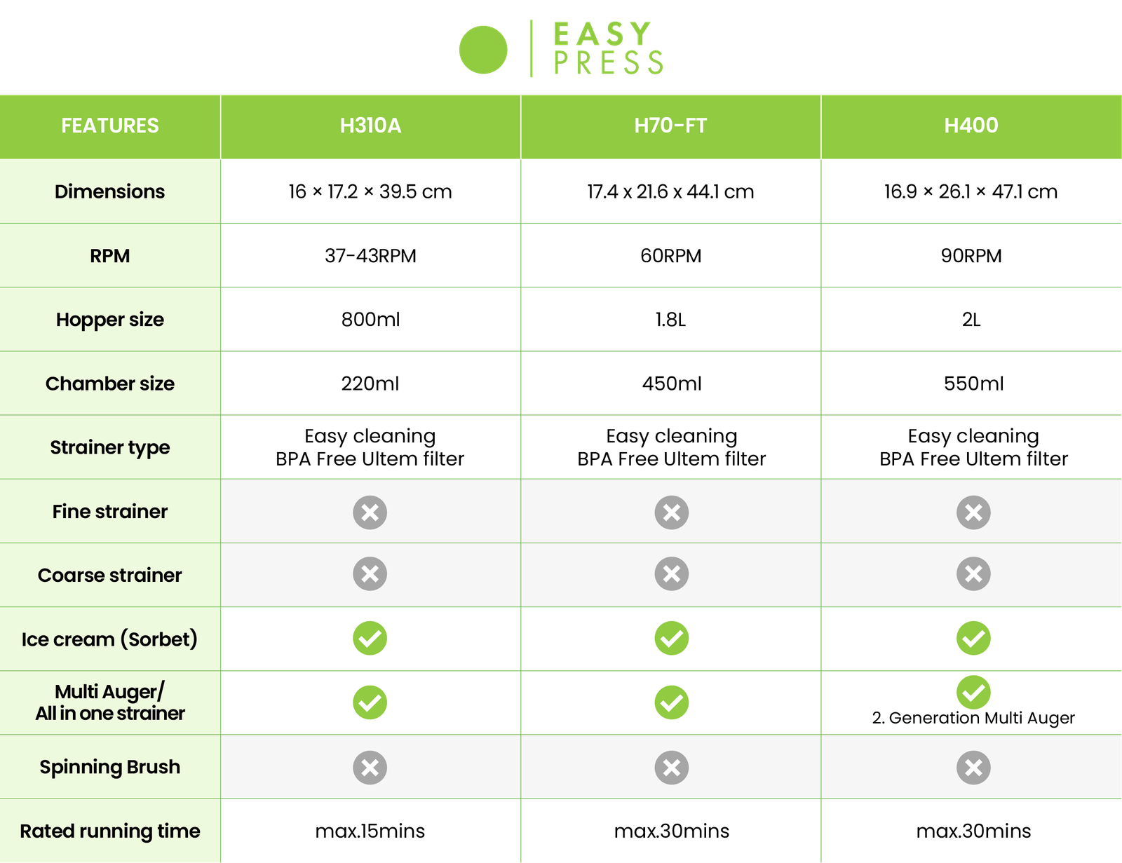 The Hurom Easy Press Lineup features a strainer-free auger design for effortless cleaning after use.