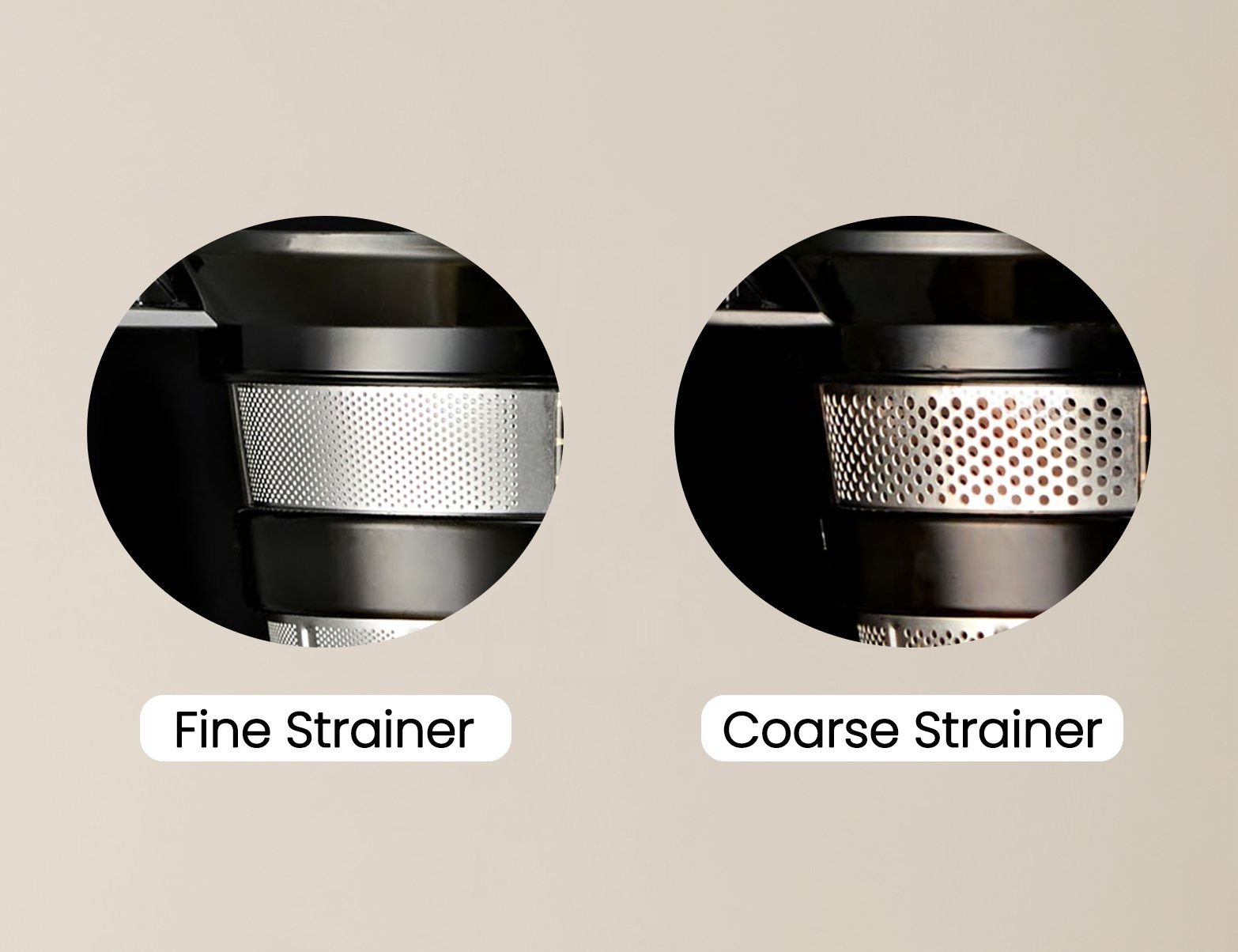 Uz dvije priložene cjediljke (fina i gruba), postoji bezbroj načina da osjetite prirodu u čaši. Koristite finu cjediljku za bistar sok s malo pulpe, ili grubu za bogatiju, gušću teksturu.