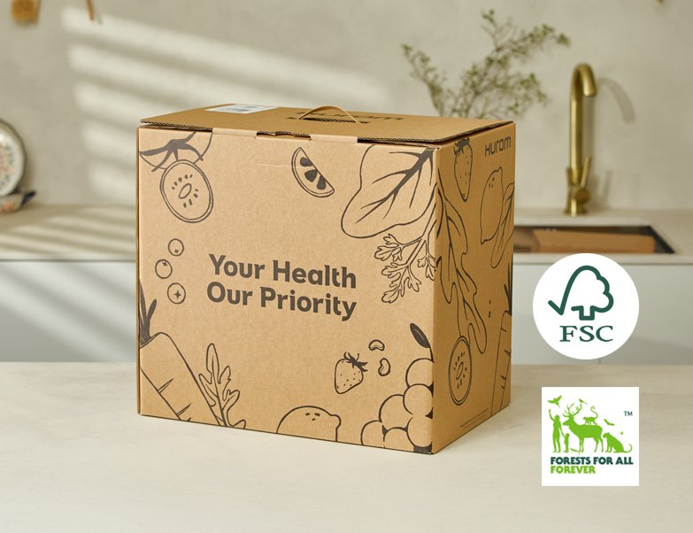 Hurom koristi održive materijale kako bi brinuo o planeti i istovremeno zaštitio vaš proizvod.